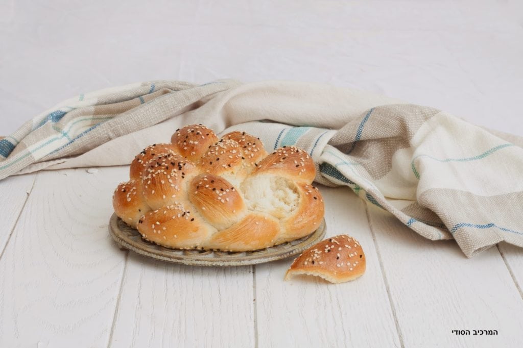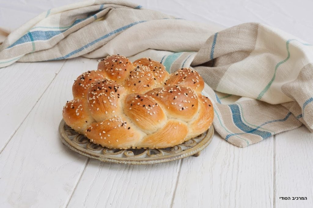 במשך כחצי שעה. טורפים ביצה ומברישים את החלה בנדיבות. זורים מעל שומשום וקצח .מכניסים