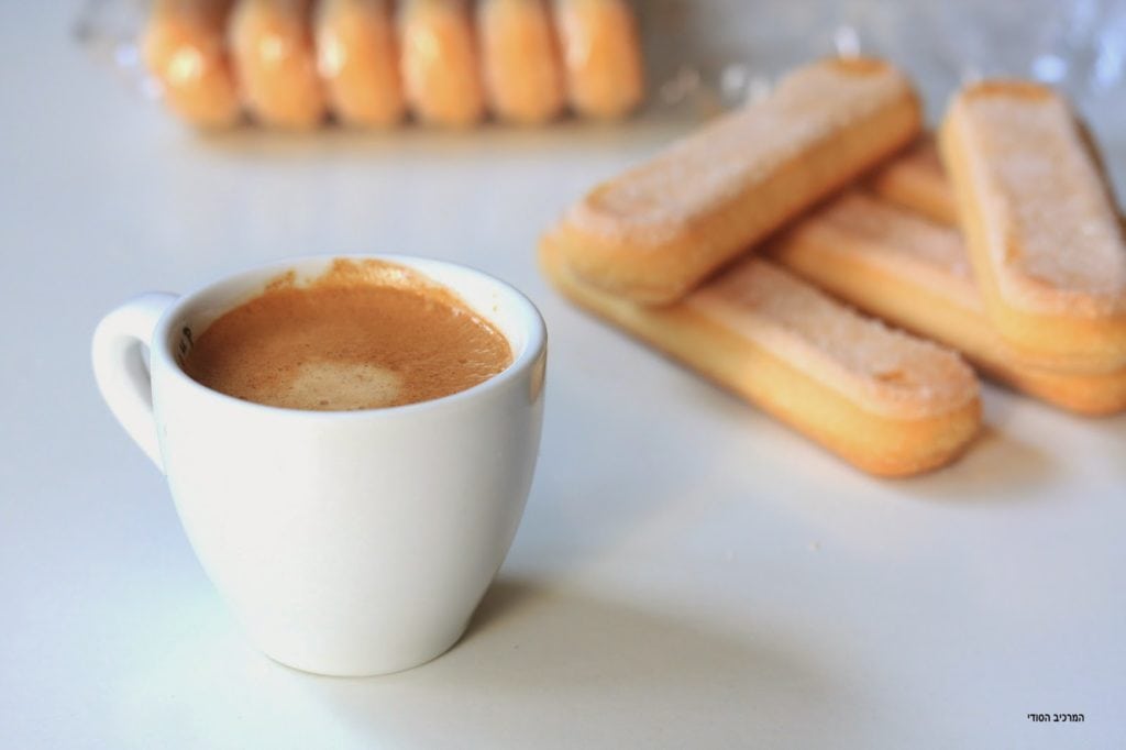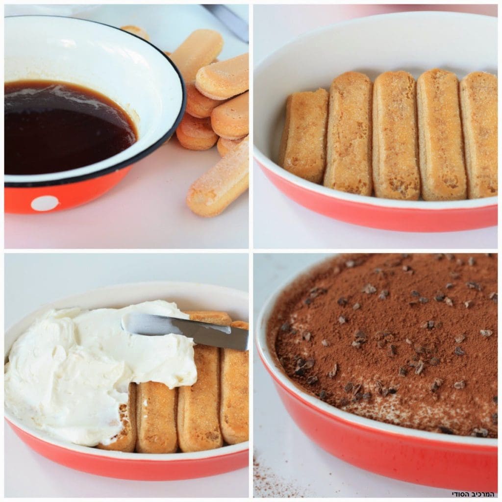 נורא), אבל אפשר גם להשתמש בכלי אחד גדול. טובלים כל ביסקוויט בתערובת הקפה