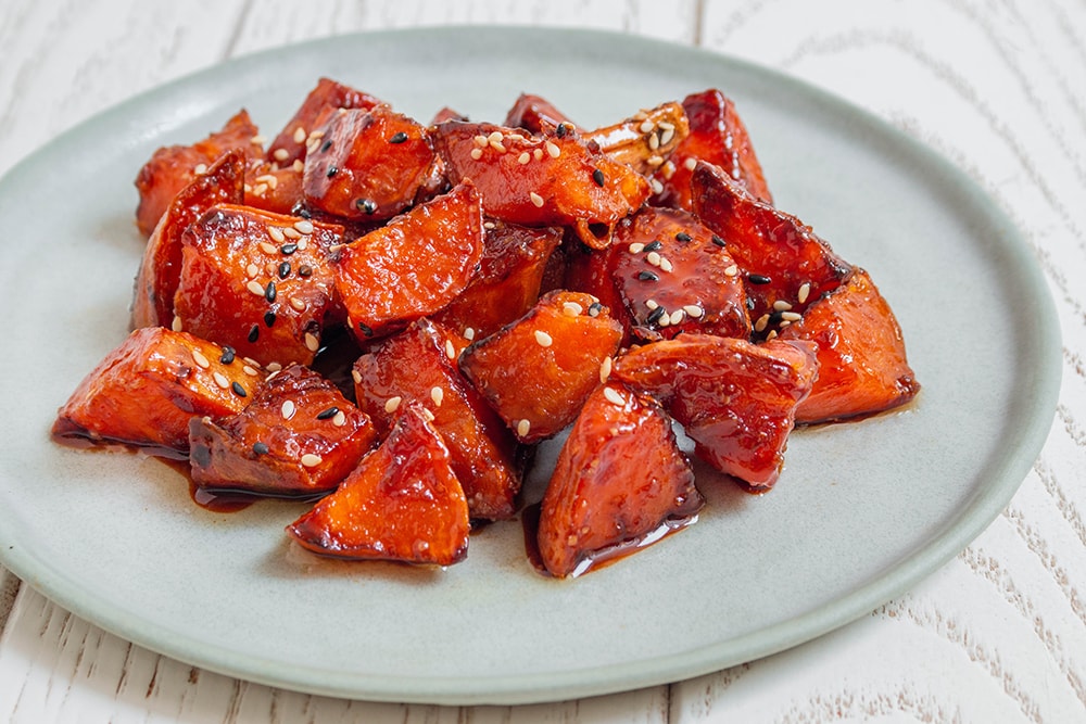 בטטה מקורמלת זו מנה מושלמת: טעימה ברמות, יפהפיה, מפנקת ומאוד פשוטה להכנה. קוביות בטטה רכות ומתוקות בצבע ענברי עמוק שישאירו טעם של עוד.